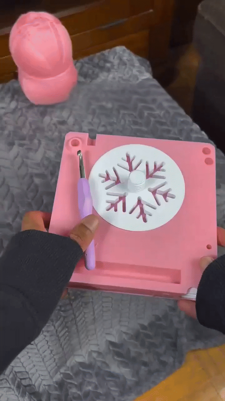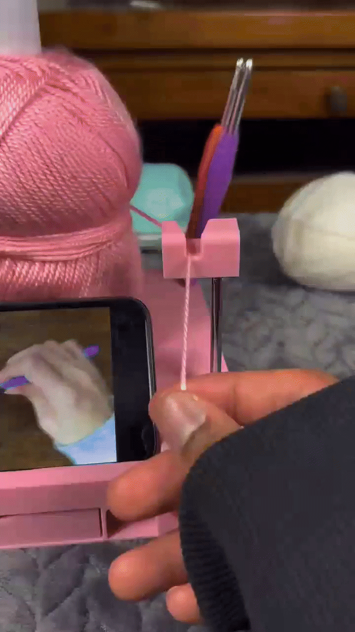 Notre support à laine comprend un emplacement intégré pour votre téléphone, parfait pour regarder des tutoriels de crochet ou votre série préférée, les mains libres !